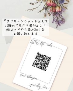 LINEアプリの「その他」→「友達追加」から、「ID検索」or「QRコード」で当サロンを追加してください(^^♪